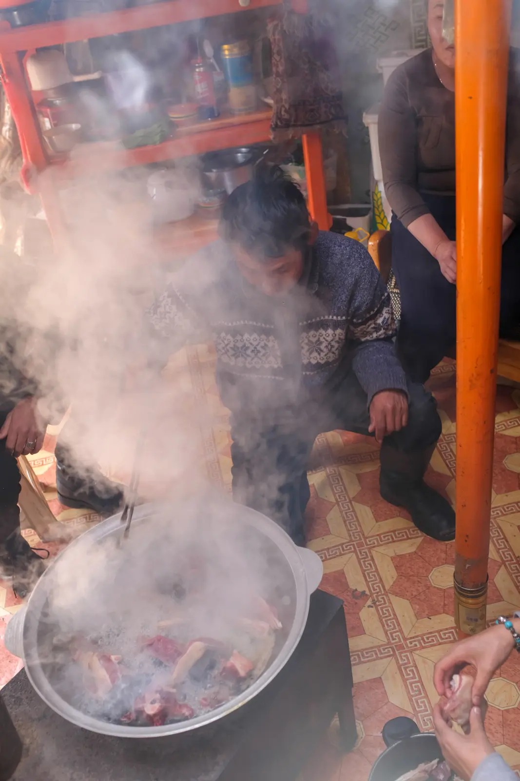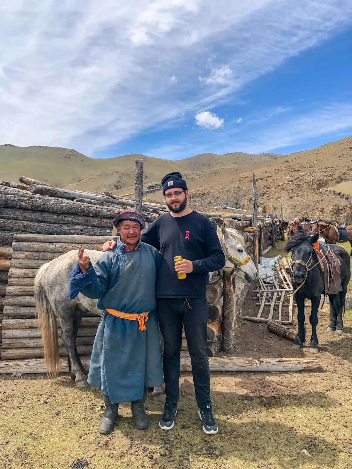 Before heading to Orkhon Valley we stocked up on beers to give to our hosts and in exchange the hosts cooked us traditional Mongolian BBQ. They essentially just take rocks from a fire and place them into a big pot with lots of goat or lamb. The locals from nearby Ghers came over on their horses to join in with the BBQ. I gave the locals some beers and in exchange they offered me to ride their horses, I declined.