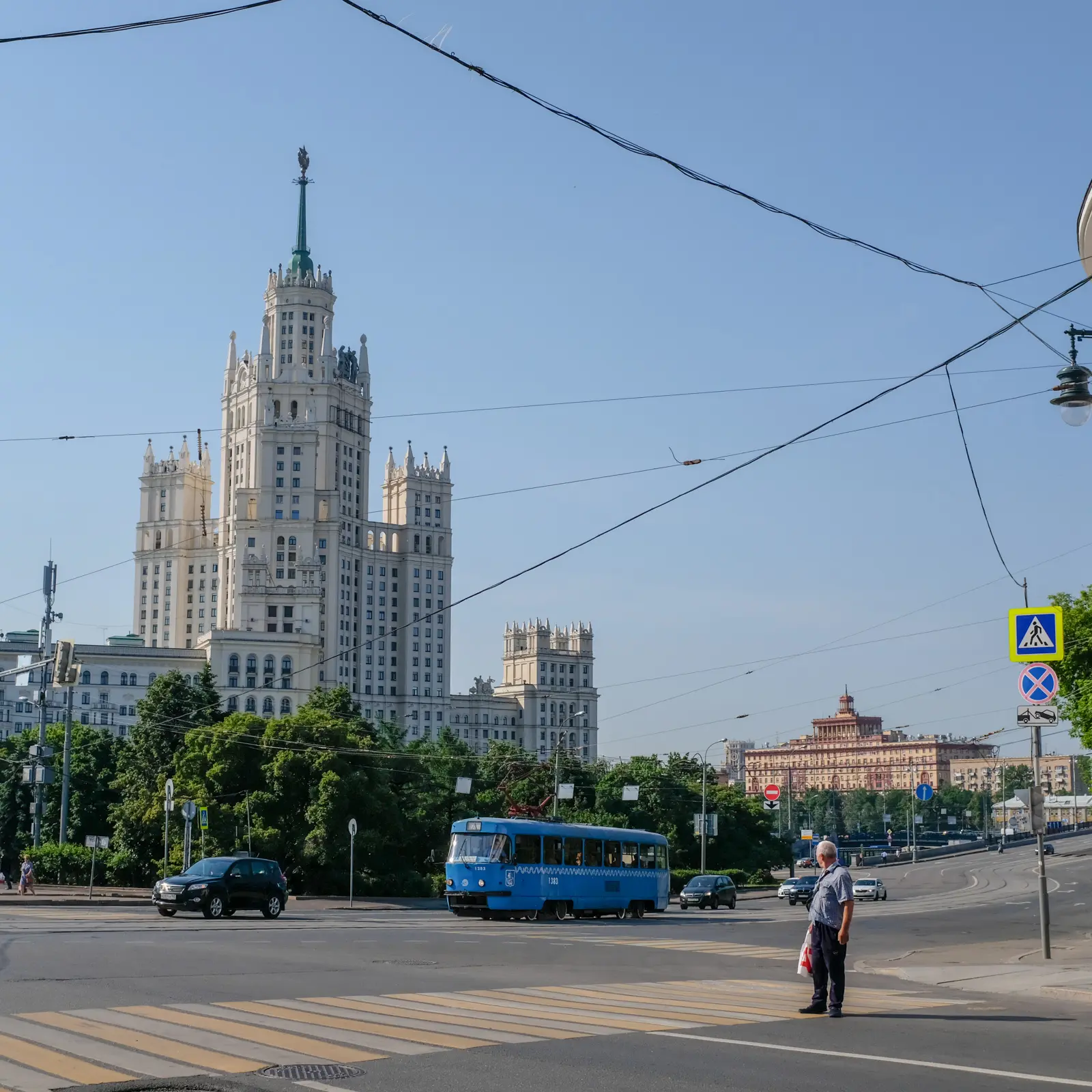Moscow is a mix of big modern glass buildings, brutalist soviet architecture, and traditional Russian style buildings. Along the river you see the seven sisters sky scrapers built by Stalin. You have the Kremlin, Red Square, St. Basil's Cathedral.